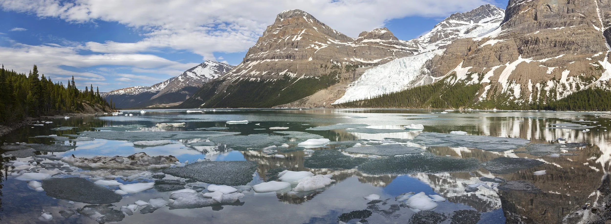 The journey culminates at Berg Lake, where floating icebergs drift across the lake beneath the towering presence of Mount Robson — the highest peak in the Canadian Rockies. From camp at the lake, optional day trips explore high alpine viewpoints, including Hargreaves Glacier and the alpine meadows of Mumm Basin, offering sweeping views of glaciers, waterfalls, and rugged mountain terrain.