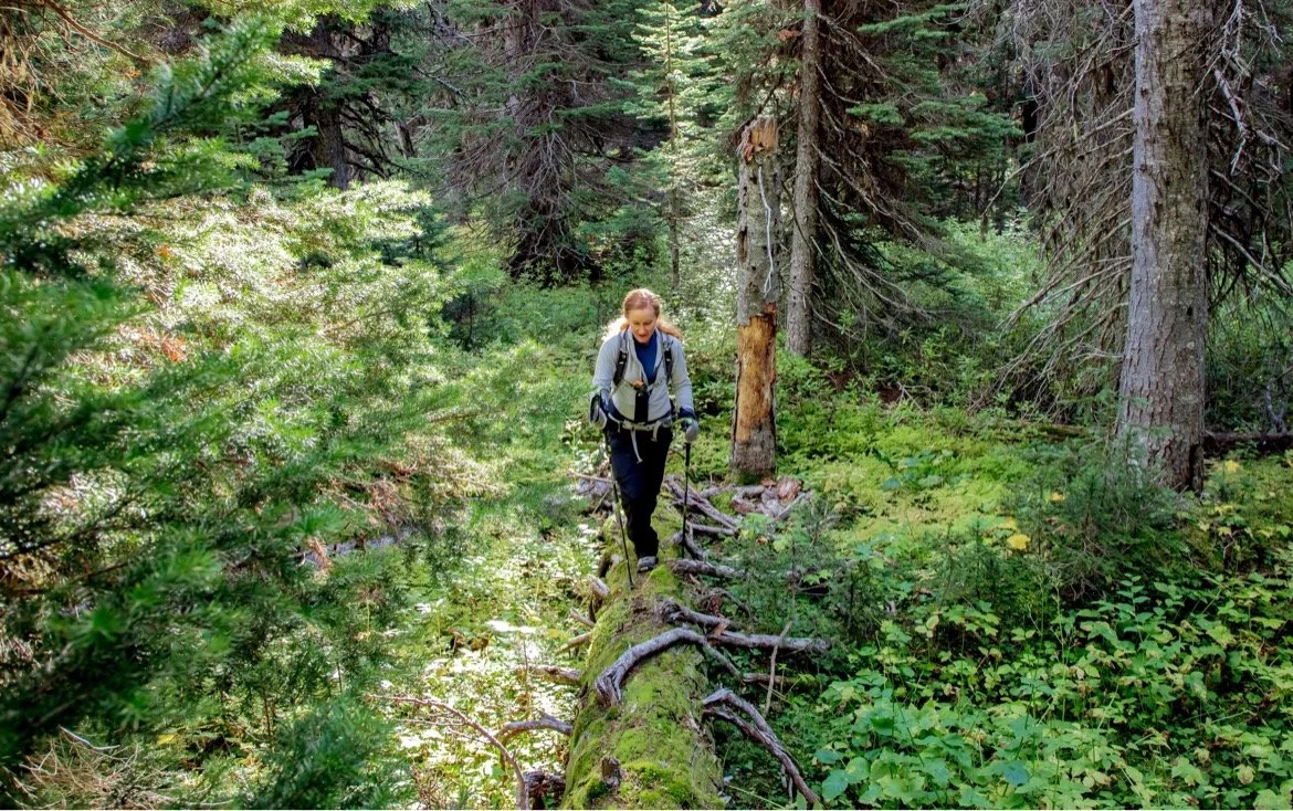Winding trail through through the forest to a fantastic ridge walk with views for days. The goats hide up here!