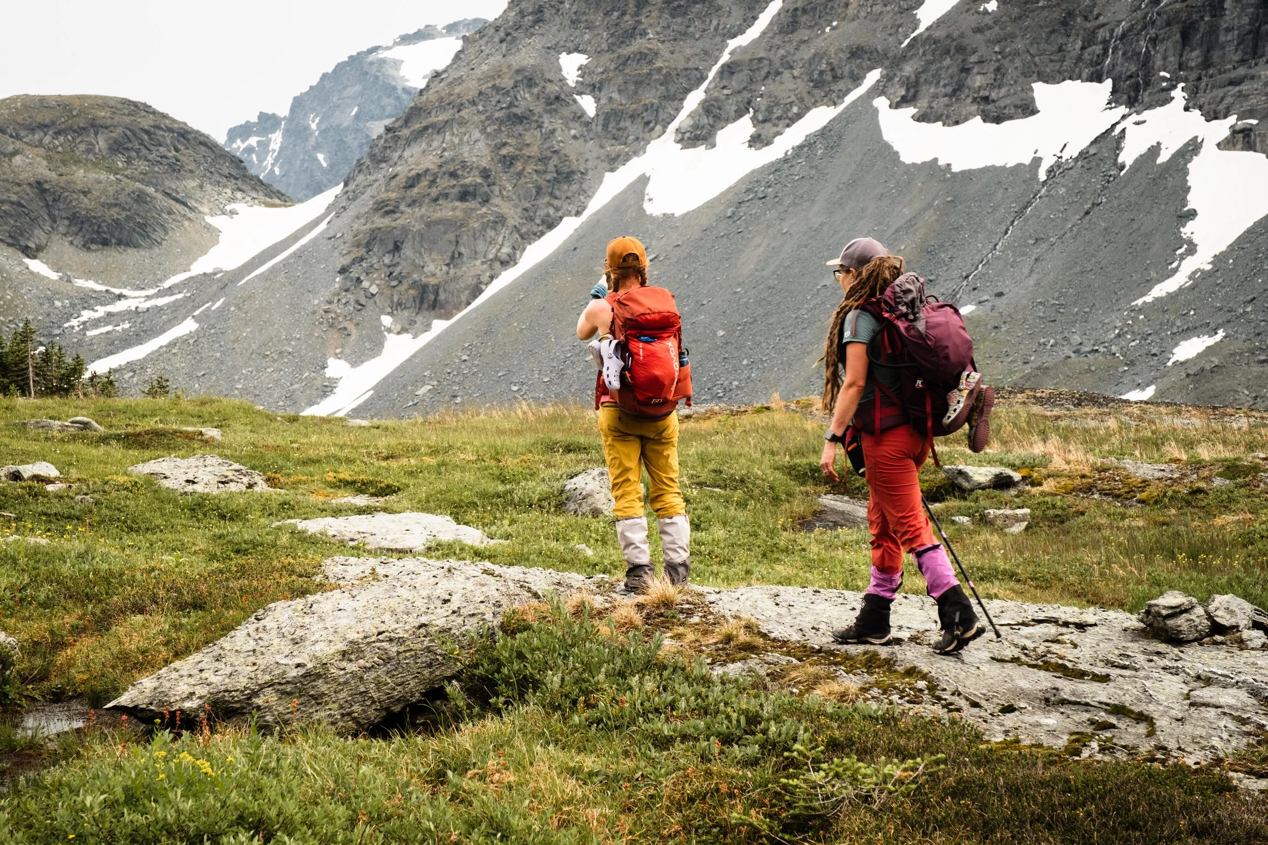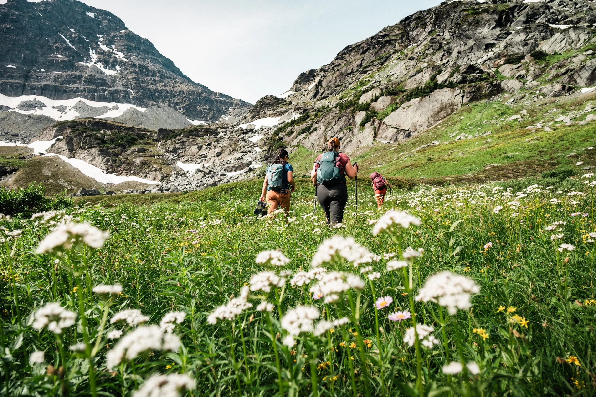 Your sleeping bag: we provide shelter, bedding setup, and warmth around camp — bring the sleeping bag that's familiar to you. Not sure what weight you'll need for alpine temperatures? Ask us.