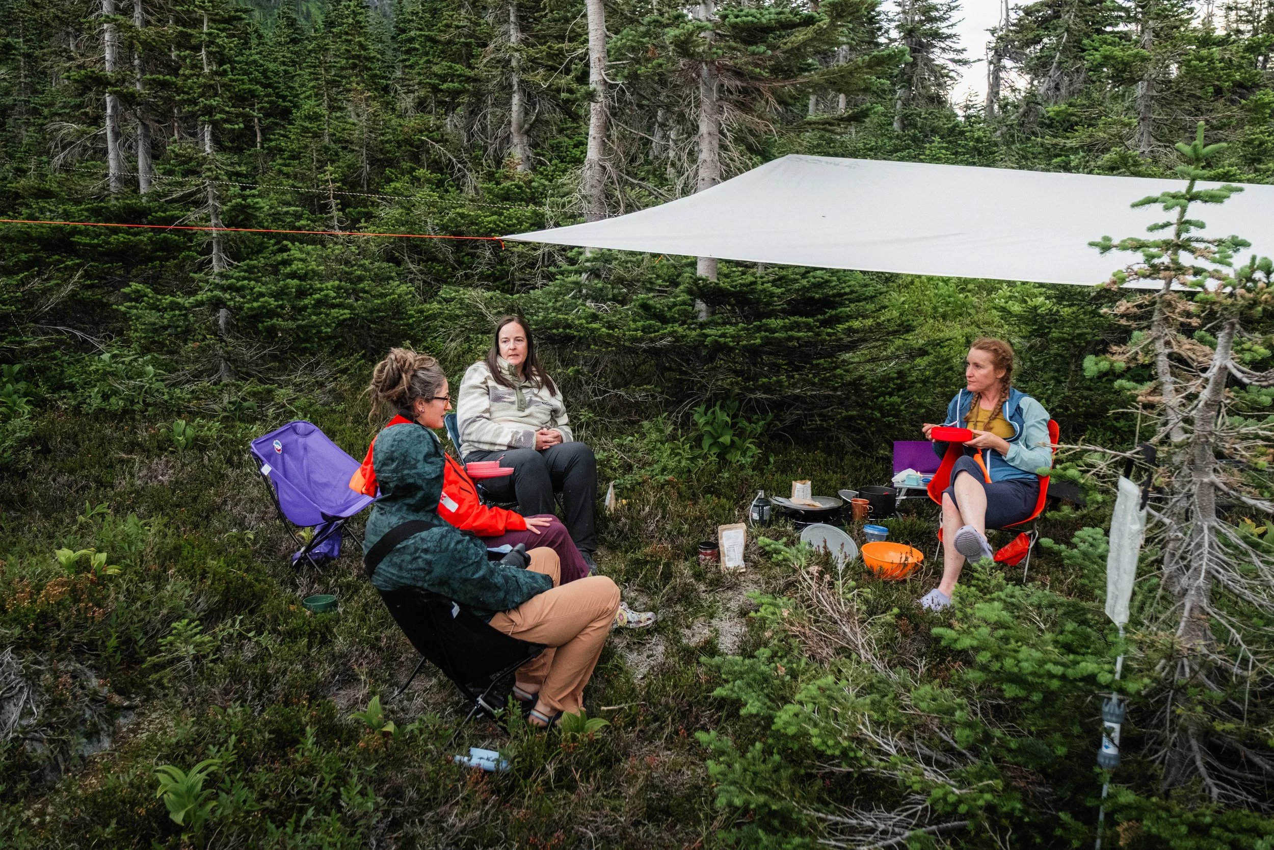 Meals are carefully considered with the environment and leave-no-trace principles in mind. Expect elevated backcountry food with touches of comfort. Clean water is filtered fresh from the mountain source. The camp perimeter is protected with solar-powered bear fencing, and food is stored away from camp so you can fully relax.
